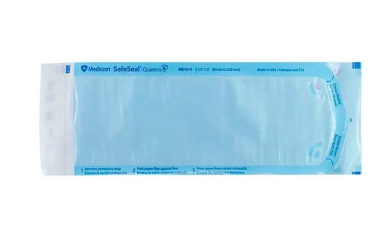 • Las bolsas de esterilización SafeSeal® Quattro están hechas de papel médico poroso de alta calidad y selladas mecánicamente con tecnología TruePress™.