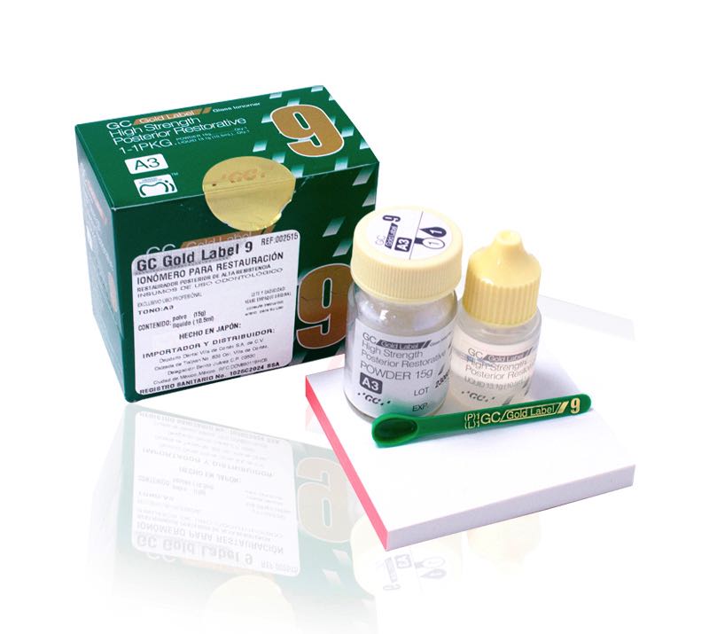 GC Fuji IX GP/ Gold Label 9 es uno de los restauradores de ionómero de vidrio líderes del mercado. Un iónomero de vidrio autopolimerizable convencional, fácil de empacar y contornear en la cavidad y que funciona fantásticamente en restauraciones posteriores de clase I, II y V. También es ideal para reconstrucciones de muñones o como base.
