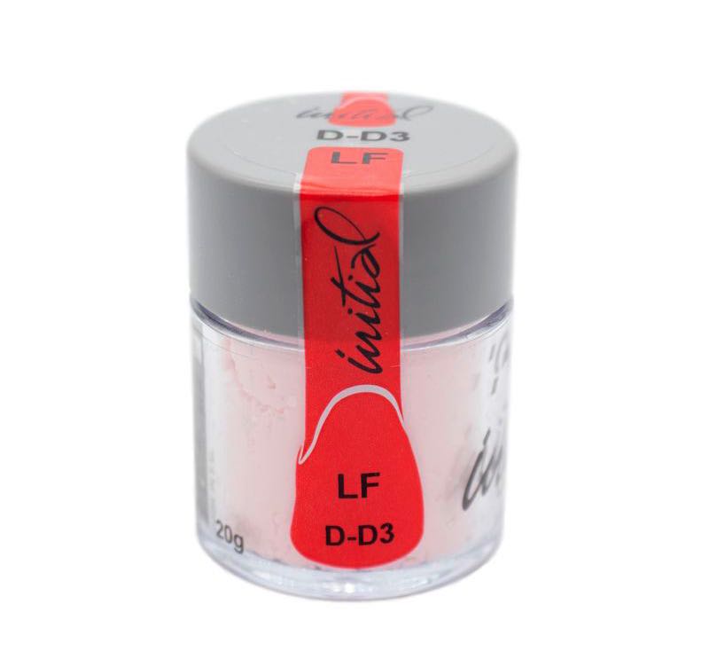 Initial LF es una cerámica sintética para cocción a baja temperatura en aleaciones con un CTE compatible con las de Initial MC de GC. Esta cerámica de baja fusión puede pulirse fácilmente para obtener un brillo intenso realista y una reducida abrasión oclusal. Initial LF se utiliza para corregir restauraciones hechas con Initial MC de GC o como material de estratificación en recubrimientos de Initial PC de GC.