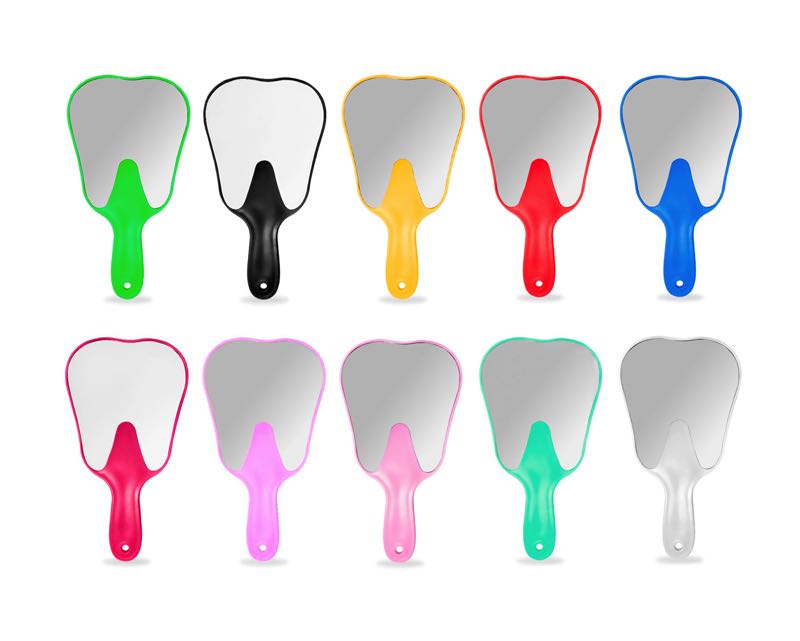 Espejo facial en forma de diente, diseñado para mostrar al paciente el resultado estético de los tratamientos dentales. Su diseño ergonómico y ligero permite un agarre cómodo y seguro. Fabricado en materiales resistentes, fáciles de limpiar y con acabado brillante.