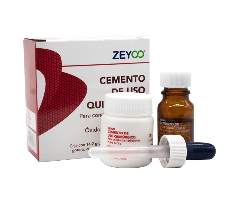 Cemento de Uso Quirúrgico Zeyco está formulado a base de óxido de zinc y eugenol. Ideal para el sellado de los conductos radiculares en el tratamiento endodóntico. Se utiliza para rellenar las irregularidades y discrepancias que existen entre el material de obturación y las paredes del conducto logrando así un sellado hermético.