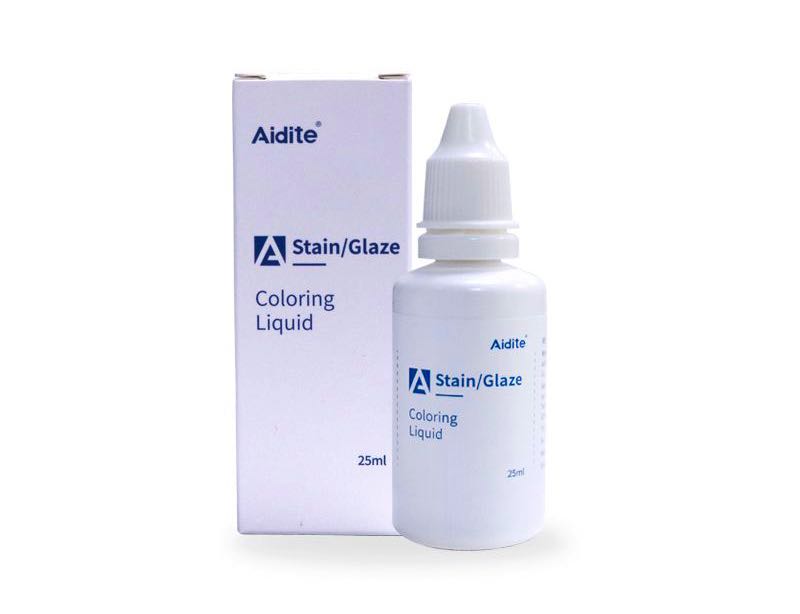 LIQUIDO STAIN/GLAZE 25 ML Líquido colorante y glaseador diseñado para la caracterización y sellado superficial de restauraciones cerámicas, proporcionando un acabado natural y duradero. | PRESENTACIÓN Frasco de 25 ml | MARCA AIDITE