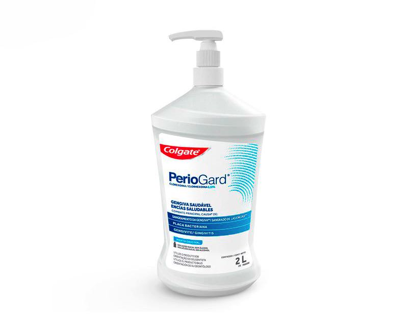 Enjuague Bucal PerioGard con clorhexidina al 0.12%, ayuda a eliminar gérmenes que causan: gingivitis, placa bacteriana, mal aliento. Hasta un 54% menos de placa bacteriana. Agradable sabor a menta. Reduce hasta un 99% las bacterias bucales. Ayuda a combatir la gingivitis y sangrado gingival, como enjuague antes, durante y post tratamiento. Su presentación de 250ml alcanza para un tratamiento de hasta dos semanas.