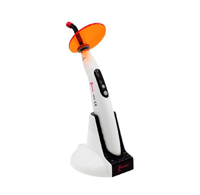 LÁMPARA FOTOCURADO WOODPECKER LED-B (GARANTIA 6 MESES) Lámpara de fotocurado con tecnología LED. | CARACTERÍSTICAS Inalámbrico.Configuración de tiempo: 5 s, 10 s, 15 s, 20 s.Batería de gran capacidad: Una carga completa puede utilizarse más de 500 veces de forma continua en el modo de trabajo de 10 segundos.Bajo consumo de energía en modo de espera: con una duración de hasta setenta días en espera.Intensidad de luz constante. El efecto de solidificación no se ve afectado por el nivel de carga restante. | ESPECIFICACIONES TÉCNICAS Fuente de alimentación: batería de litio recargableModelo de batería: ICR18650Voltaje y capacidad de la batería: 3.6 V / 2000 mAhEntrada del adaptador: 100 V – 240 V ~ 50 Hz / 60 HzParte aplicada: fibra ópticaFuente de luz: luz azulLongitud de onda: 385 nm – 515 nmIntensidad lumínica: 1000 mW/cm² – 1700 mW/cm²Condiciones de trabajo:Temperatura ambiental: 5 °C – 40 °CHumedad relativa: 30 % – 75 %Presión atmosférica: 70 kPa – 106 kPaDimensiones: 3.1 cm × 3.4 cm × 26 cmPeso neto: 145 gPotencia de consumo: ≤ 8 W | PRESENTACIÓN Lámpara LED BFibra ópticaProtector de luzAdaptadorBase de carga | MARCA WOODPECKER