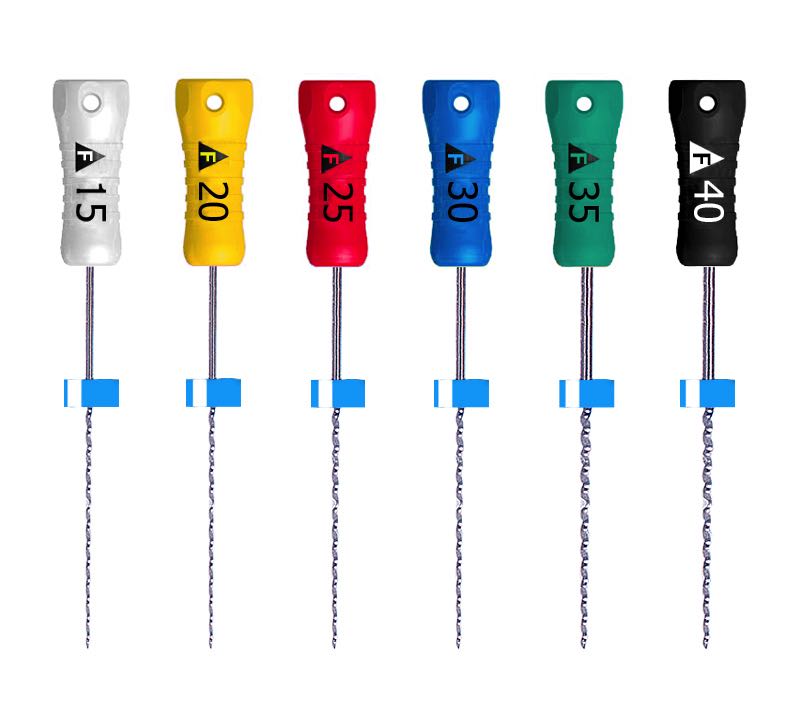 Fabricados en acero inoxidable, los ensanchadores (reamers) se utilizan para la exploración y permeabilización durante la instrumentación, así como para la eliminación de residuos orgánicos y minerales durante las fases finales de la preparación.