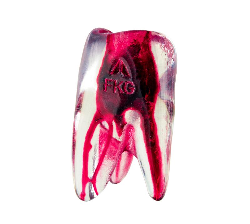 Este diente FKG-3D es una reproducción de un primer molar superior izquierdo natural.