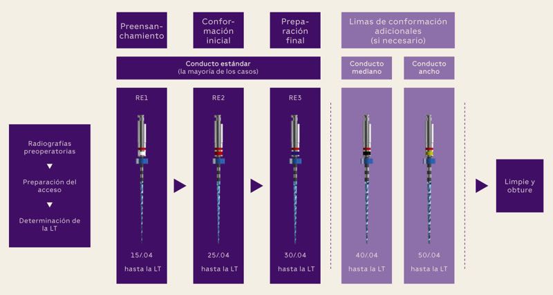 Secuencia simple 1-2-3:RACE EVO simplifica la gran mayoría de los tratamientos del conducto radicular ofreciendo una secuencia sencilla de 3 limas y ajustes de motor uniformes en toda la gama. Con una sola lima de vía de deslizamiento seguida de dos limas de conformación, su proceso de trabajo de endodoncia es sencillo y solo precisa de unos cuantos instrumentos.