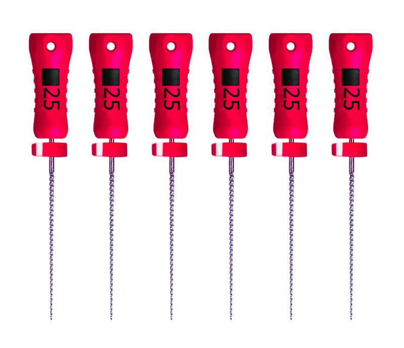 Las limas K-Flex son más flexibles que las limas “K” convencionales, principalmente en los tamaños nº 30 y superiores, lo cual facilita el tratamiento de canales curvos y su preparación con mínimas posibilidades de formación de escalones o perforaciones.