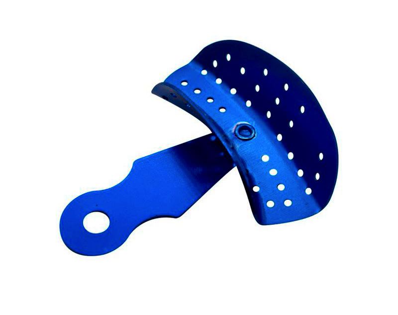 Diseñada con perforaciones distribuidas en la superficie, lo que permite una mejor retención del material de impresión, como alginato o siliconas dentales.