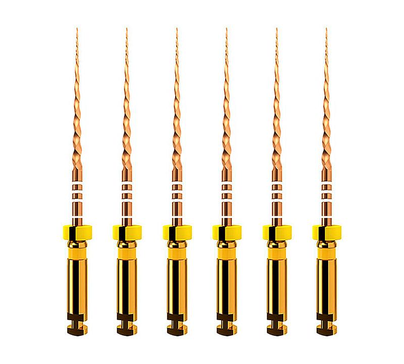 ProTaper Gold® son instrumentos endodónticos cónicos accionados por motor, fabricados en aleación de níquel-titanio y sometidos a un tratamiento térmico posterior. Estos se utilizan para conformar y preparar mecánicamente los conductos radiculares durante la terapia endodóntica. Estos dispositivos son instrumentos para el conducto radicular reutilizables, disponibles en versión estéril.